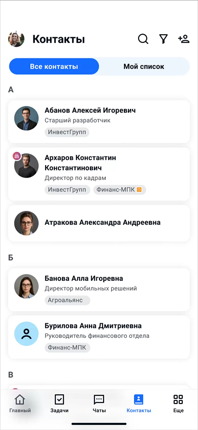 Чаты, видеозвонки, сторис, новости компании — всегда под рукой.