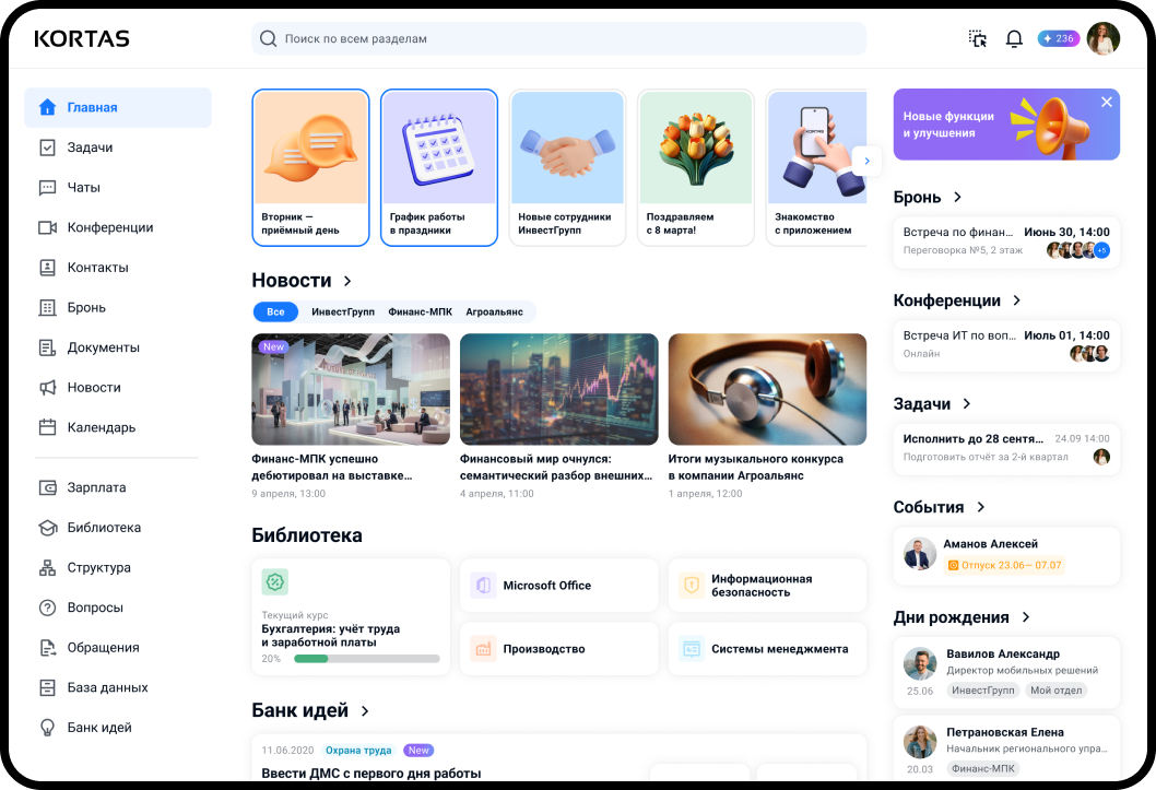 KORTAS объединяет сотрудникови процессы компании.